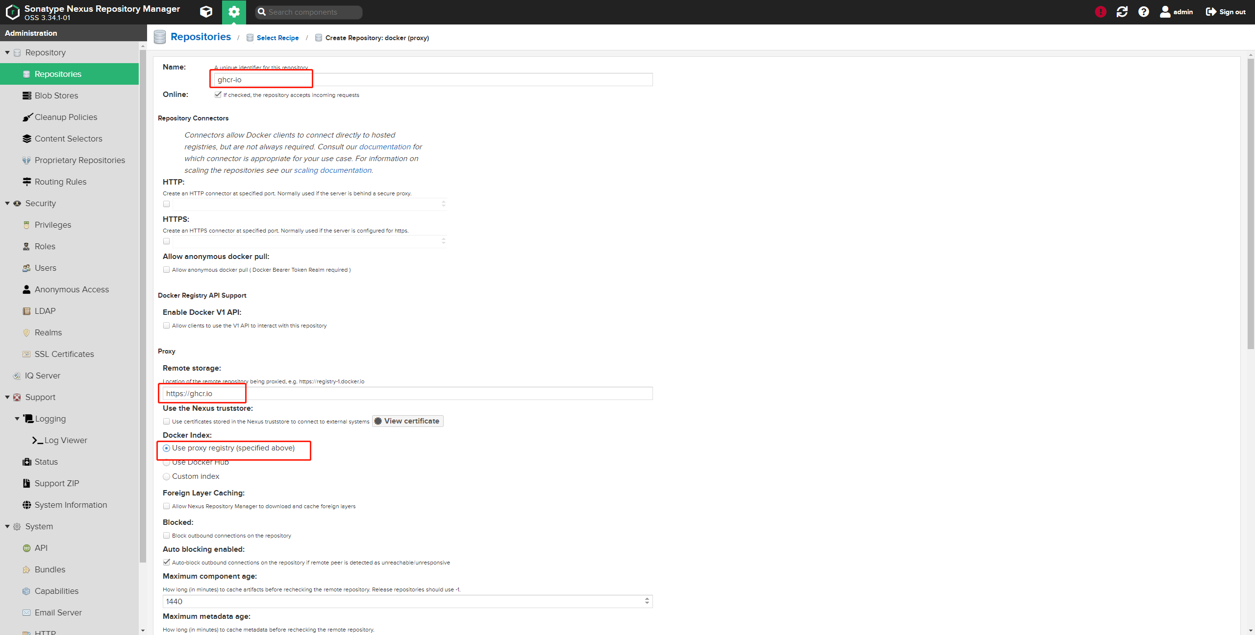 Proxy-Remote storage配置成https://registry-1.docker.ioProxy-Docker Index选择Use Docker Hub,能够保持最新