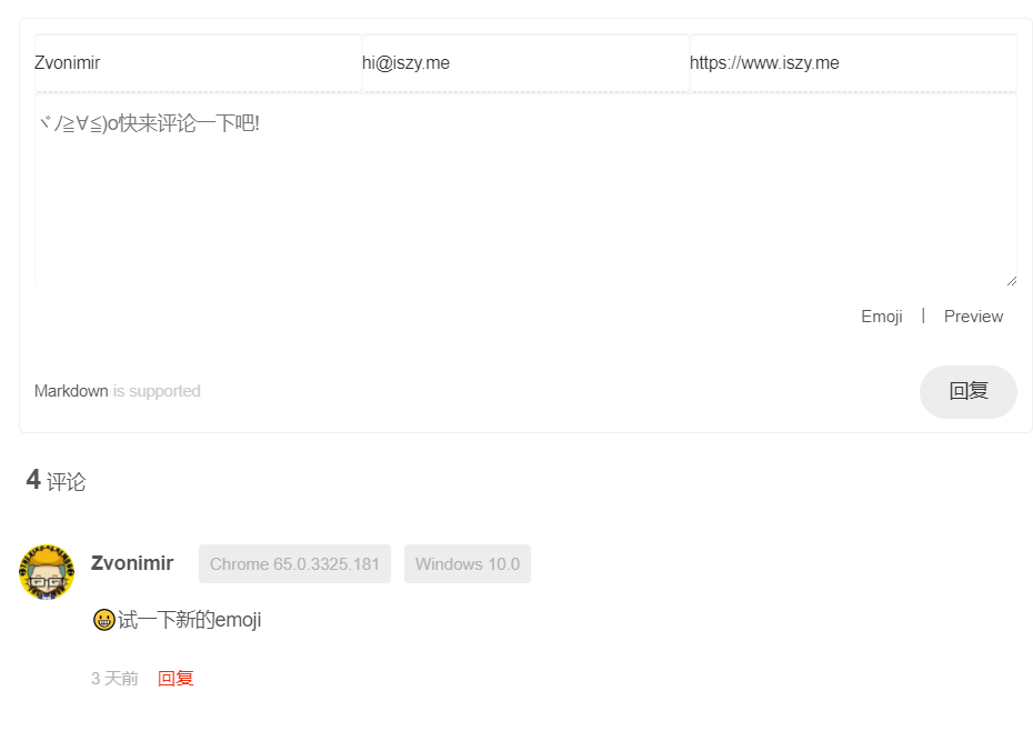 - 评论支持 markdown 语法