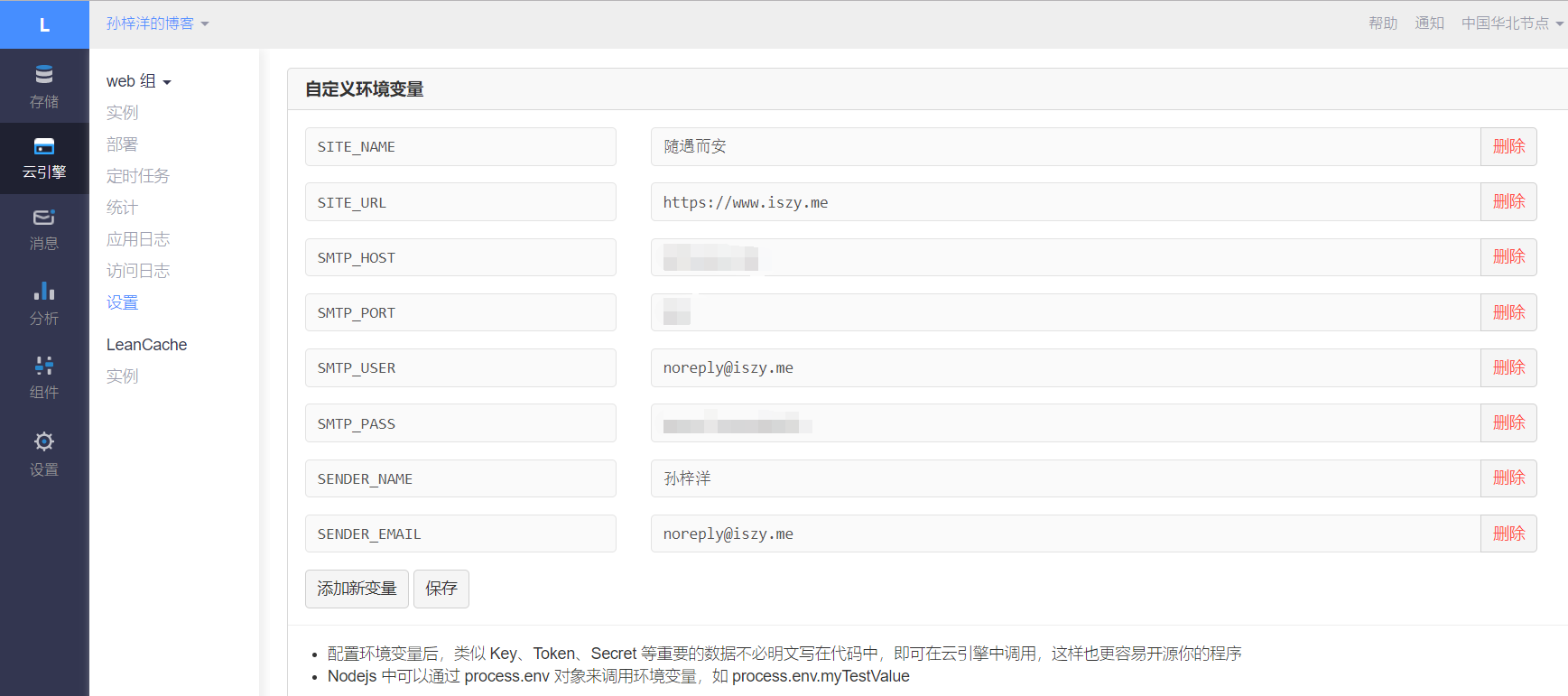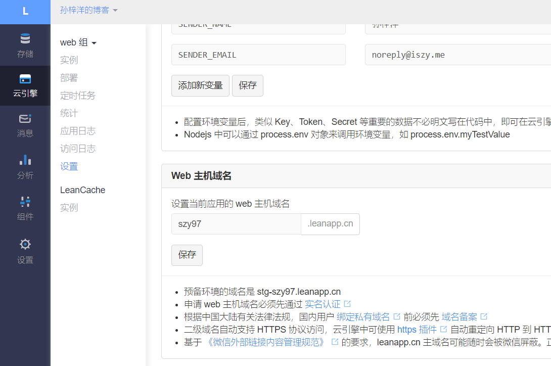 此外,还需要设置云引擎的环境变量以支持运行,如图所示。