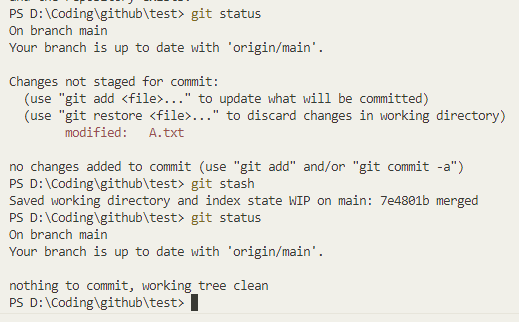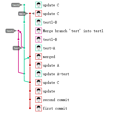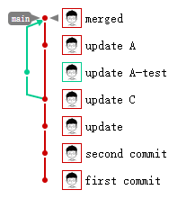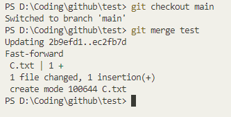| git checkout main git merge test