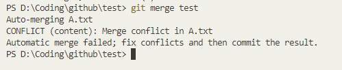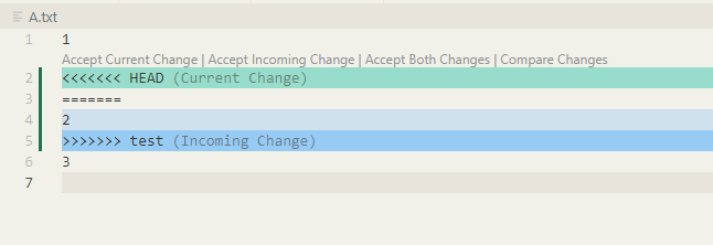 当两个分支都对同一行进行了修改,git 便会产生冲突,并标记为未合并