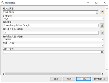 像元大小统一设为 10,样条函数类型选择 TENSION。