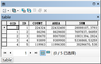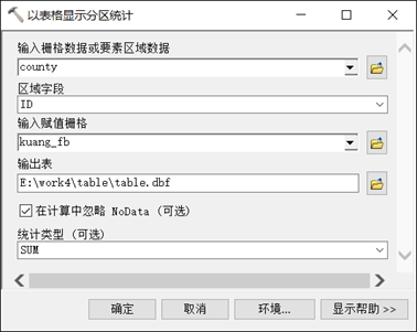 使用“Spatial Analyst 工具”-“区域分析”-“以表格显示分区统计”工具,对 county 每个分区的矿产储量进行统计。