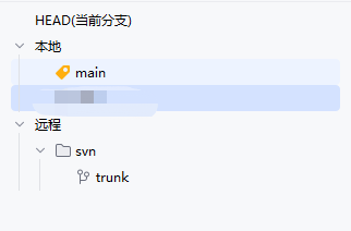 完成以后在本地查看生成的仓库分支信息,就类似于这样,原来的分支都会挂在 svn 这个远程下,本地 main 分支即为原来的 trunk 内容。