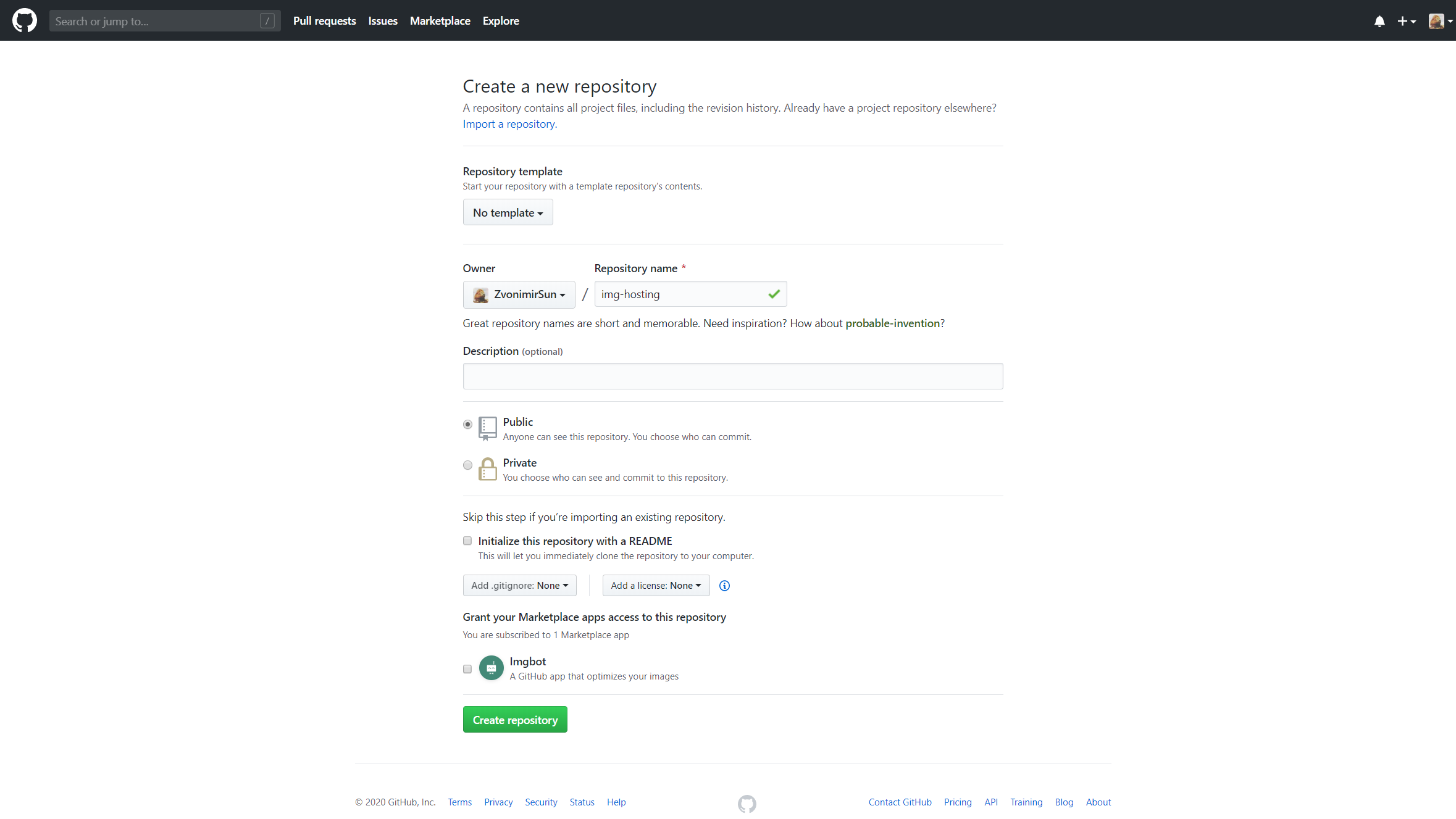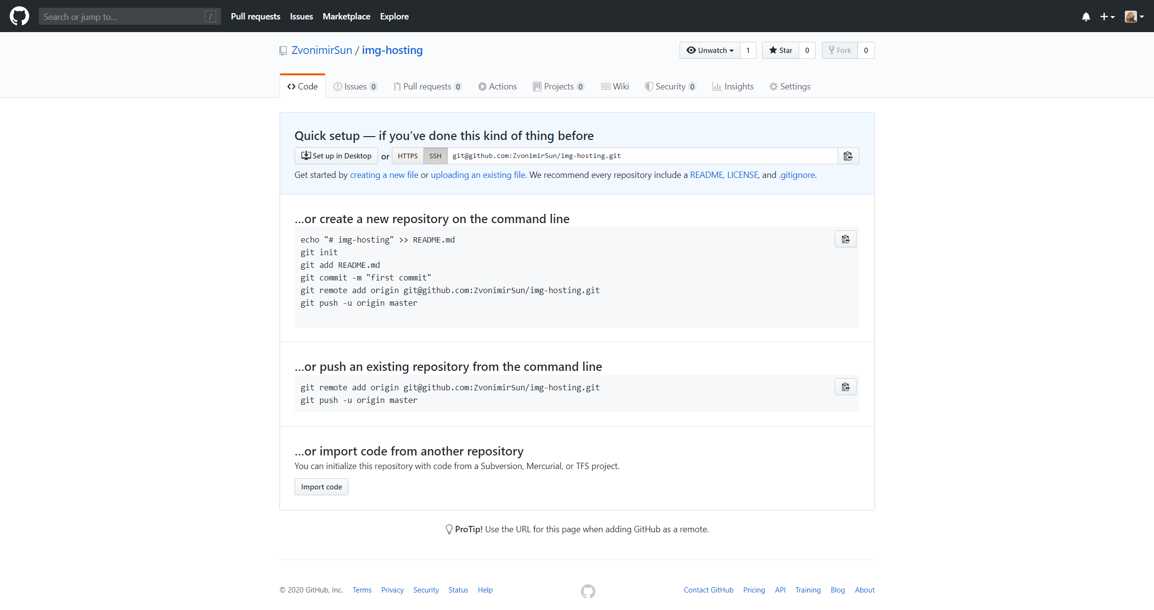 比如我这里建立了一个名为 img-hosting 的仓库作为示例,链接形如